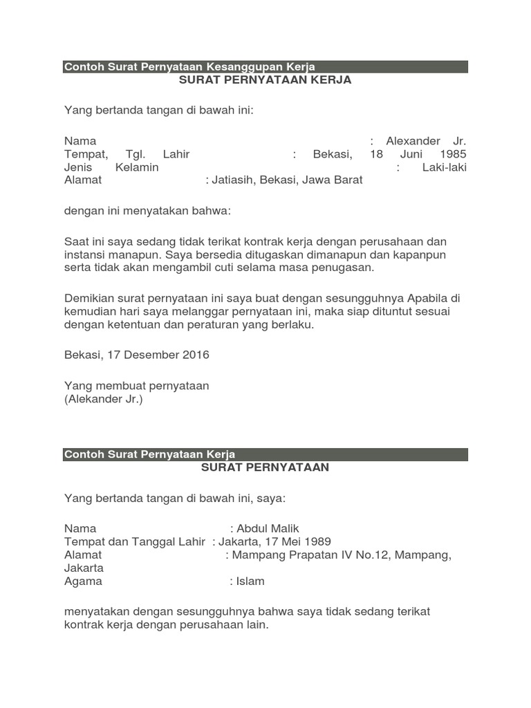 Ikhsan tempat tanggal lahir : Namun, ada kelebihan penggunaan surat pernyataan tertulis karena lebih mudah diingat dan bisa dibuktikan. 7 contoh surat pernyataan dan cara mudah membuatnya. Meski tidak mudah tapi langkah seperti ini memang harus diambil entah karena urusan keluarga, kesehatan, mencari karir yang. Contoh surat pernyataan kerja saya yang bertanda tangan di bawah ini : Muhammad abdul razzaq tempat/tanggal lahir : Cara buat surat keterangan kecelakaan lalu lintas 2019 untuk. Contoh surat keterangan yang baik contoh surat pernyataan jenis fungsi dan strukturnya lengkap inspiring id 10 contoh surat pernyataan untuk berbagai keperluan file doc Contoh surat pernyataan kesanggupan diri kerja contoh surat pernyataan kerja 1 surat pernyataan saya yang bertandatangan dibawah ini : Pada umumnya surat pernyataan diri dapat dipergunakan untuk mendaftar sekolah, melamar pekerjaan maupun lain sebagainya. Contoh surat pengunduran diri kerja. Kondisi yang dimaksud mencakup kesanggupan terhadap segala sesuatu yang tertuang dalam surat tersebut, antara lain sanggup bekerja lembur, bersedia mengabdi beberapa tahun. Dalam surat pernyataan ini menyatakan diri secara pribadi.